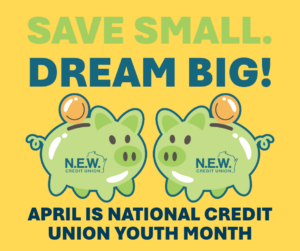 April is National Credit Union Youth Month: Save Small. Dream Big at N.E.W. CU!