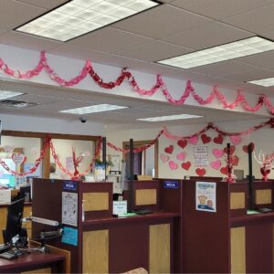 Participants can donate and watch their generosity grow … literally! Each contribution adds to a growing display of paper chains and hearts hanging in our lobbies, symbolizing compassion, community, and connection.