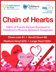 This February, we’re proud to participate in the Chain of Hearts Fundraiser, a meaningful initiative through Children’s Miracle Network Hospitals to benefit Children’s Wisconsin and supporting life-changing care for children and families in our communities.