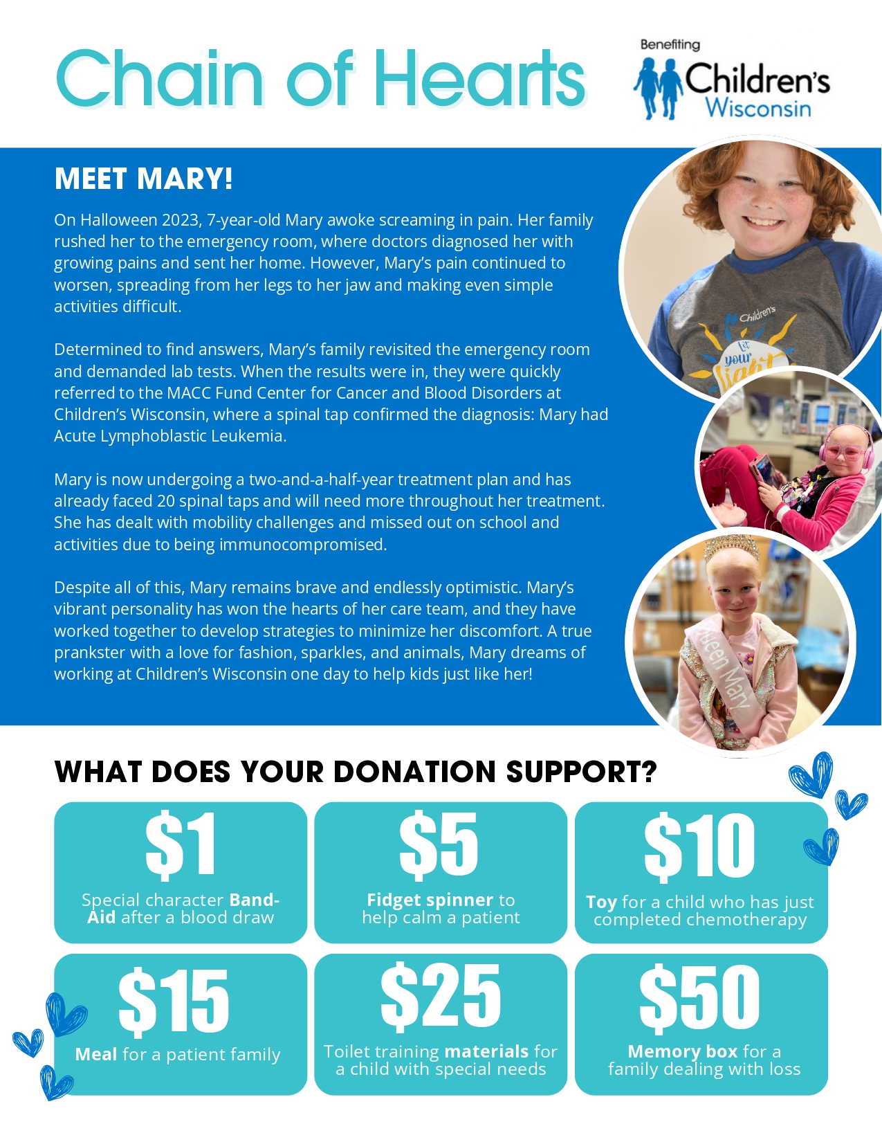 Whether you donate $1 or $25, every contribution helps build a stronger chain of support for children and families who need it most. Together, we can turn small acts of kindness into something truly powerful.